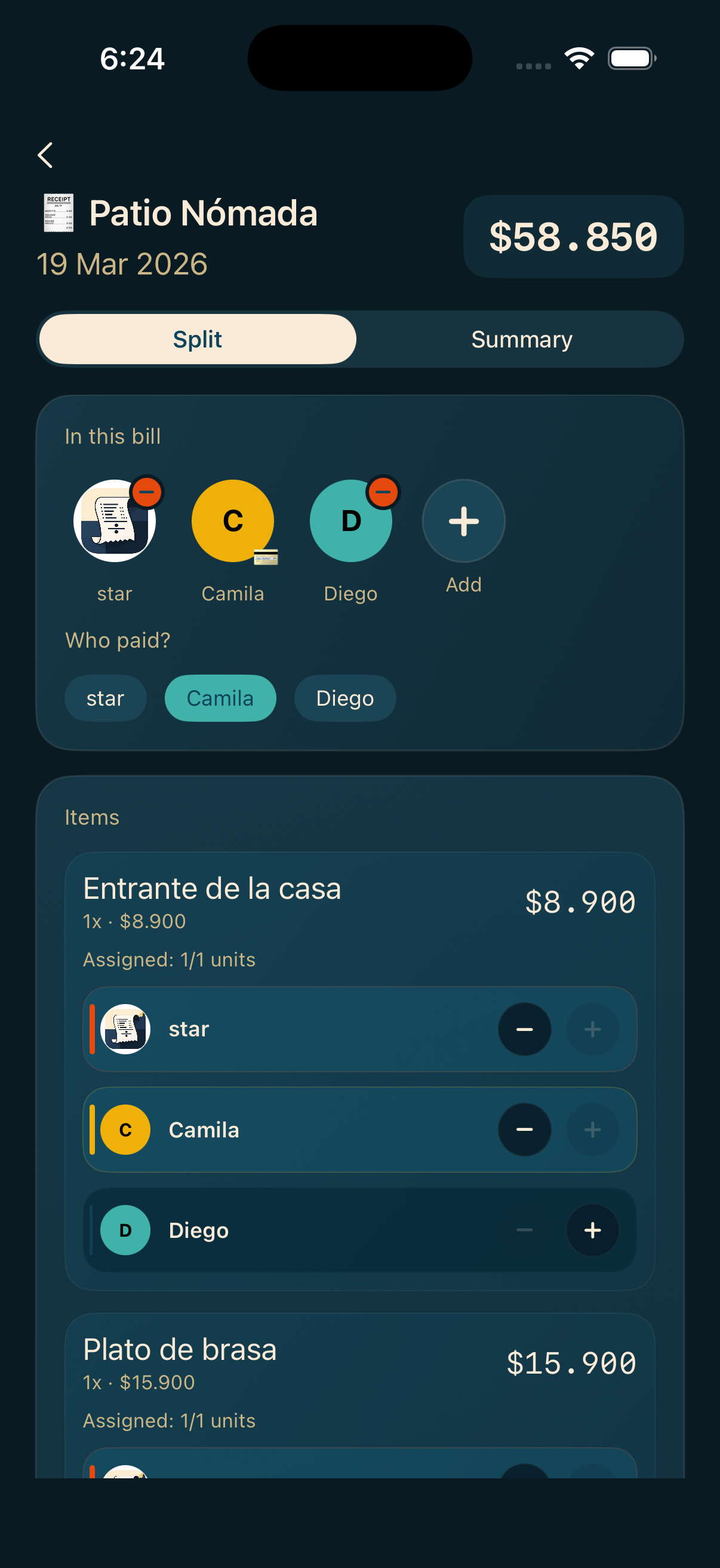 Escanea el recibo, asigna cada ítem y obtén al instante quién le debe a quién. La cuenta real, clara y lista para saldar.